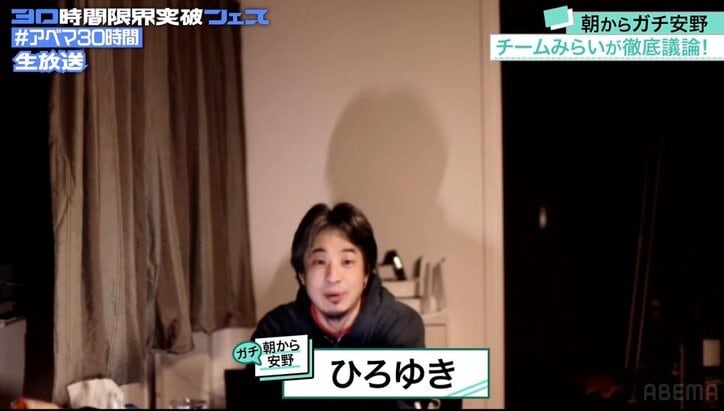 ひろゆき氏、山本裕典を「知らない」と明かしスタジオ笑い チームみらい安野党首「“軍神”から詰められてませんでした?」 30時間限界突破フェス,朝からガチ安野 2026/04/14 11:50 拡大する 2ちゃんねる創設者のひろゆき氏が俳優の山本裕典を「知らない」と明かし、スタジオは笑いに包まれた。 12日日曜朝6時、チームみらいの安野貴博党首と地方の課題とAIについて語る「朝からガチ安野」がスタートしたが、途中で話題は俳優でありながらホストとしてバラエティ番組にも出演する山本裕典に。 経済動画メディア「ReHacQ」のプロデューサー 高橋弘樹氏から山本について質問された安野党首は「動画の切り抜きを見たことあります。『軍神』から詰められてませんでした?」と答え、高橋氏は「やっぱり、安野さんの元まで(歌舞伎町の伝説的ホストで、山本の指導を務めている)軍神が届いている」と感心した。 続きを読む