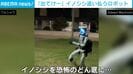 そそくさと逃げる3頭のイノシシ…。後を追うのは、なんと「ロボット」だ。