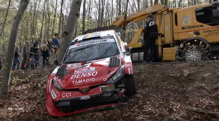 世界ラリー、トヨタの新星を“開始3分で”襲った衝撃アクシデント 観客総出の救出劇も路肩転落でレッカー出動の痛恨ミス WRC 2026/04/16 07:20 拡大する 【WRC 世界ラリー選手権】第4戦 クロアチア・ラリー(4月10日〜12日) WRC(世界ラリー選手権)クロアチア・ラリーは、今季の開幕戦で鮮烈な優勝を飾ったトヨタの24歳新星ドライバーを開始早々に襲ったアクシデントで幕を開け大きなインパクトを与えた。 アクシデントに見舞われたのは、今季好調を維持していたオリバー・ソルベルグ(トヨタ)だ。競技初日、デイ1のオープニングとなるSS1。左、右と続く連続S字コーナーを走行中、右コーナーで左側の土手にヒット。激しい衝撃を受けたマシンはスピンを喫し、そのまま反対側の路肩へと転落してしまった。 続きを読む