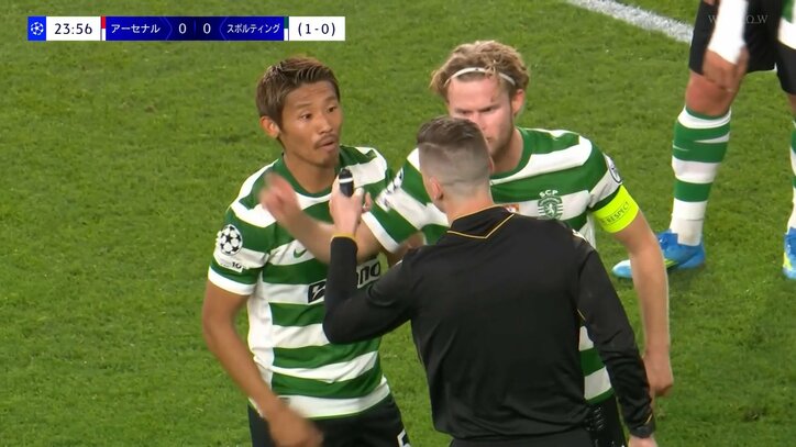 守田英正、“微妙な判定”で主審に詰め寄り抗議 「今のはいってたよな」「可哀想」秀逸な守備で存在感、判定に同情も チャンピオンズリーグ守田英正 2026/04/16 12:06 拡大する 【UEFAチャンピオンズリーグ】アーセナル 0-0 スポルティング(日本時間4月16日/エミレーツ・スタジアム) スポルティングのMF守田英正が相手からボール奪取を試みたがファウルの判定に。スタジアムが騒然となり、本人も審判に詰め寄った場面にファンからも同情の声が寄せられる微妙な場面があった。 日本時間4月16日、スポルティングはUEFAチャンピオンズリーグ準々決勝のセカンドレグでアーセナルと対戦。先発出場した守田は、中盤で試合の舵を舵を取った。 続きを読む