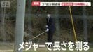 写真を撮ったり、道路の幅を測ったあとに自宅の方に向かってメジャーを伸ばしていきます。