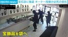 店内を映したカメラには、女性2人が入ってくる強盗を止めようと必死に抵抗している様子が映っている。しかし強盗らはケースを次々と破壊し、宝飾品を袋に入れていく。