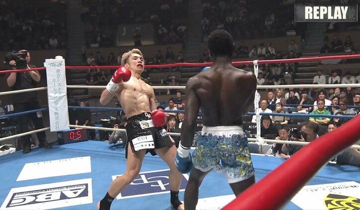 「まるでワンピースのルフィ」未知の異様に“のび~る”ジャブでKO 魔裟斗驚き「ジャブでダウンを…左一発で倒した」 K-1・KRUSH 2026/04/16 16:54 拡大する 伸びる、まだ伸びてくる…。射程圏外にいるはずの顔面に、異様に“のび~る”ジャブが炸裂。次の瞬間、対戦相手がダウンする思わず“二度見”したくなる光景に「まるでワンピースのルフィ」「こんなジャブ初めて見たことない」と放送席から驚きの声が上がり、K-1レジェンドの魔裟斗も「ジャブでダウンを…カウンターじゃなく、左(ジャブ)一発で倒した」と未知の打撃に驚嘆した。 4月11日、代々木競技場第二体育館で開催された「K-1 GENKI 2026」。佐々木大蔵(DyR studio)とアラッサン・カマラ(セネガル)によるワンマッチは、1ラウンドでのドクターストップによるTKO決着となった。特質すべきは異様な長さのリーチを誇るカマラの伸び~るパンチだった。 続きを読む