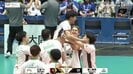 そして大きなジャンプと共に放った強烈なサーブは東レアローズのリベロ・武田大周を後方へと吹っ飛ばして、サービスエースに。自らのポイントでチームを3―0のストレート勝ちへと導いてみせた。その瞬間、コートには熱狂する選手たちの歓喜の輪が出来上がる。