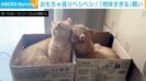 おもちゃを挟んでにらみ合うトラくん(推定6歳10カ月)とコテツくん(推定6歳10カ月)兄弟。お気に入りのおもちゃをめぐる仁義なき戦いの始まり。やさしいペシペシから一旦、動きが止まってしまった両者。ここでコテツくんが飛び付いたが…何も起きない。2匹のちょっとスローでなんともやさしい戦いに飼い主は、「地味すぎるペシペシ大会」と投稿している。