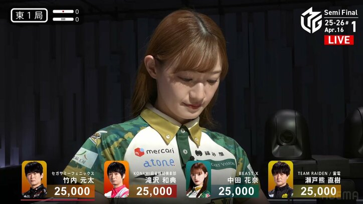 「かわいすぎる」元アイドル雀士“覚醒の3年目”に華やかさもマシマシ「なんという麗しさ」いつもより長めのカメラ目線にファン喜ぶ/麻雀・Mリーグ Mリーグ 2026/04/17 10:00 拡大する 「ZOZOTOWN Mリーグ2025-26」セミファイナルシリーズ。4月16日の第1試合、BEAST Xの中田花奈(連盟)が登場。今シーズン、雀力とともにその美貌にもさらに磨きがかかった「純卓のインフルエンサー」が、入場シーンからファンの心を鷲掴みにした。 乃木坂46の元メンバーであり、現在は自身がオーナーを務める麻雀カフェの経営、さらにはグラビア写真集が大ヒットを記録するなど、マルチな才能を発揮している中田。Mリーグ参戦3年目となる今期は、レギュラーシーズン個人7位という好成績をマークし、麻雀界全体から「完全に覚醒した」と極めて高い評価を受けている。 続きを読む