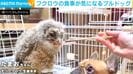 ゴハンを食べている、モリフクロウのたまおちゃん。実はまだ、生後半年のフワフワなヒナ。 そんな新入りのたまおちゃんを、穴が開くほど見つめるのは先輩犬、フレンチブルドッグのボンくん(3歳)だ。