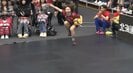 場内に手を振りながらコートを去る際、勢い余って転倒するなどファンに心配されたものの、すぐさま起き上がって最後まで元気いっぱいの姿でファンを沸かせ続けていた。