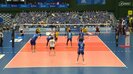 衝撃の“弾丸サーブ”が炸裂した。男子バレーで125キロのスピードを計測した一撃は、相手レシーブの手を弾いてボールが天井を直撃。その威力にファンも騒然となった。