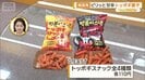 「缶やお菓子が並んでいますね、あ、トッポギスナックなんですね。確かにタレが甘辛いですもんね、それがお菓子になったってどんな味なんでしょう?」
