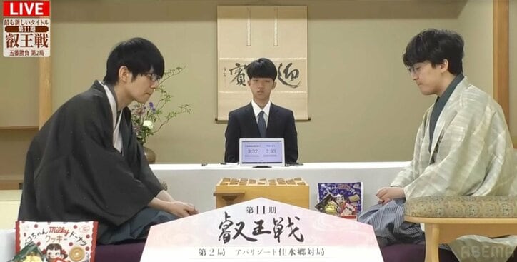 「ビジュいいじゃん」?伊藤匠叡王&斎藤慎太郎八段の“映えスイーツ”が話題「買いに行こう」「ふわふわしてそう」 将棋伊藤匠,斎藤慎太郎 2026/04/18 11:20 拡大する 将棋の第11期叡王戦五番勝負第2局が4月18日、石川県加賀市の「アパリゾート佳水郷」で午前10時から対局を開始した。3連覇を目指す伊藤匠叡王(王座、23)と、2期連続での挑戦となる斎藤慎太郎八段(32)が激突する本局。10時30分には午前のおやつタイムを迎え、両者が注文した彩り豊かな“映えスイーツ”にファンから多くの反響が寄せられた。 将棋は、1日の対局で体重が数キロ減るとも言われる過酷な「頭脳スポーツ」。体を動かす競技並みにエネルギー消耗が激しいため、対局中の栄養補給は極めて重要となる。第6期から菓子メーカーの不二家が主催する叡王戦では、対局室に「お菓子ボックス」が設置されているのが大きな特徴。菓子メーカー主催の棋戦とあり、午前、午後のおやつタイムは、激しい盤上の戦いのゆくえと共にファンにとって見逃せない大きな注目ポイントとなっている。 続きを読む