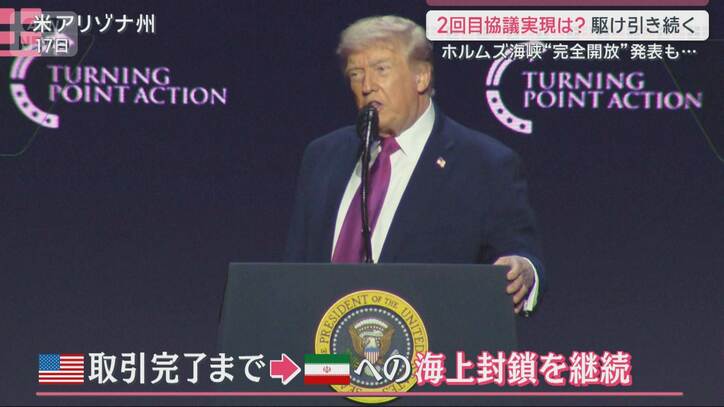 ただその一方で、取引が完了するまでは、イランに対する海上封鎖を継続すると強調しました。