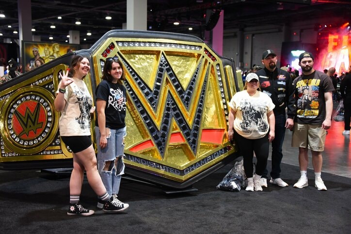1本10万円以上の“王者ベルト”が飛ぶように売れる WWE最大の祭典「レッスルマニア」という魔法 ベルトを通じてファンの熱量のワケを探ってみた WWE 2026/04/19 06:09 拡大する 現地時間18日、19日(日本時間19日、20日)に米・ラスベガスのアレジアント・スタジアムで開催される世界最大のプロレス団体WWE最大の祭典「レッスルマニア42」を控え、現地時間16日~20日の日程で各地から“ユニバース(ファンの呼称)”が集う『WWE WORLD at Wrestle Mania42』が開催されている。会場での人や催し物の多さもさることながら、ひと際目を引くのが、老若男女問わず、誇らしげに本物さながらのチャンピオンベルトを肩に掛け、腰に巻いてイベント会場、さらには街中、ホテルの中を歩くユニバースの多さである。 続きを読む