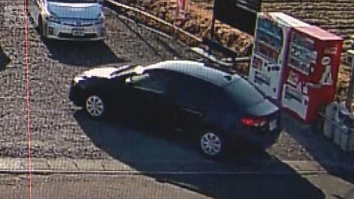 自動販売機で飲み物を買うために現れた黒い車。安達容疑者の自宅にあったものと同じ車種で、ナンバープレートの数字も一致しました。