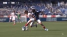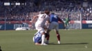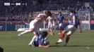 倒れた相手を踏みつける格好となり、スタジアムから大きなブーイングが巻き起こった。