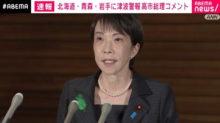 高市総理「警報解除まで安全な場所に」 東北地方で最大震度5強 速報 2026/04/20 20:08 拡大する 高市総理大臣は、午後7時半前に記者団の取材に応じ、津波警報が発表されている地域の人たちに対し、警報が解除されるまで安全な場所から離れないよう呼びかけました。 高市総理は、地震への備えとして、避難場所や避難経路を改めて確認するよう求めました。 また、今後1週間程度はすぐに避難できる態勢を維持し、非常持ち出し品を常時、携帯することなどを呼びかけた上で、「社会経済活動を継続してください」と述べました。 そして「被害があった場合などには即応できるよう連絡体制を確保し、政府としては危機管理に万全を尽くす」と強調しました。(ANNニュース) 続きを読む
