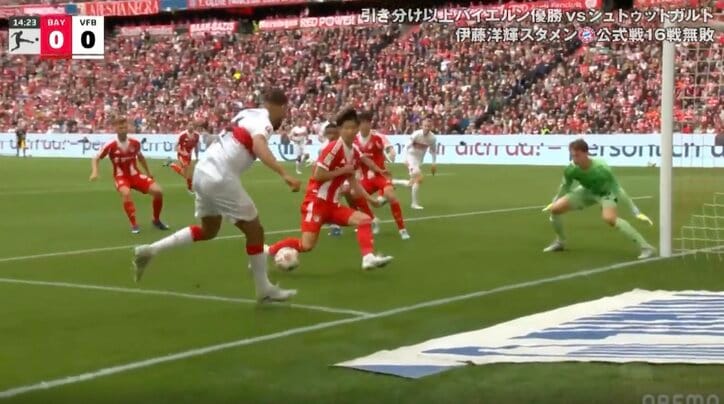 バイエルンは日本時間4月20日、ブンデスリーガ第30節でシュトゥットガルトと対戦した。この試合で引き分け以上に終わると、2年連続35回目の優勝となる重要な一戦。伊藤は左のセンターバックとして、DFキム・ミンジェとの“日韓センターバックコンビ”でスタメン出場した。