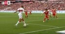 立ち上がりから圧倒的にポゼッションを握るバイエルンだったが、15分に一瞬の隙からピンチを迎える。DFヨシュア・ヴァグノマンが、力強いドリブルで右サイドを持ち上がる。さらに大外に開いたMFビラル・エル・カンヌスとのワンツーでボックス内へ侵入してきた。