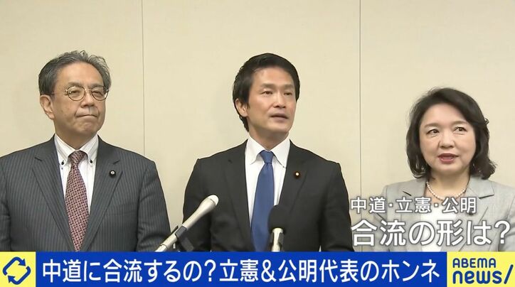 中道・立憲・公明は合流するのか “保留状態”の長期化でリスクも?「立憲の優秀な人材は“チームみらい”に行くと思う」 ABEMA Prime 2026/04/21 16:35 拡大する 先日、惨敗となった2月の衆院選総括の素案を公表した、中道改革連合。敗因として、立憲民主党と公明党の支持基盤の単純な合算では、支持を拡大できず、とりわけ立憲を支持する無党派層の離反を招いたこと。改革色が強い高市総理を批判したことなどが、「“旧態依然とした抵抗勢力”と映った恐れがある」などを挙げた。 そして、教訓として「政権批判がメインの従来型野党」から「政策提案重視の建設的野党」への転換、党名変更の検討などの党改革が必要だとした。さらに、今のような衆参バラバラの状態では、批判された「選挙互助会」というイメージを払拭することは難しいので、参議院の「立憲・公明の早期合流を図る」としている。 続きを読む