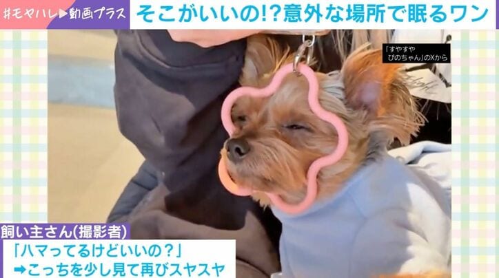 「スマホが少し重い?」と思ったら…まさかの犬の行動に165万超表示「フィットしててかわいい」「癒やされました」 わたしとニュース 2026/04/22 07:30 拡大する スマホストラップにあごをのせて眠る犬の姿が、話題になっている。 投稿したのは、ヨークシャーテリアのぴのちゃんの飼い主(@suyapino)。飼い主の友人のスマホストラップにあごをのせて眠るぴのちゃんの姿を、Xに投稿した。 飼い主の友人は、「スマホが、少し重いな?」と思い、ストラップが使われていることに気づいたそうだ。 思わぬスヤスヤタイムに、飼い主が思わず動画を撮っていると、一度は起きたものの「ハマってるけどいいの?」と聞くとこっちを少しみてまた寝てしまったのだという。 続きを読む