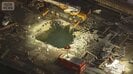 事故直後のヘリから撮影した映像には、鉄板に大きな穴が空き、何本もの鉄筋が海面に向かって折れ曲がる様子が映し出された。