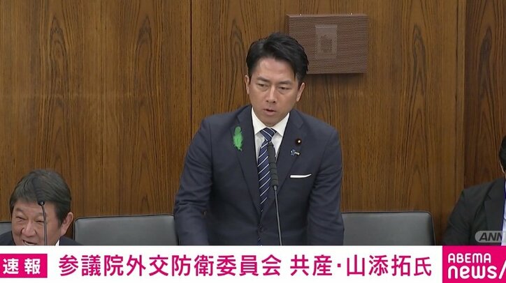 小泉大臣「共産党さん、ミサイルが大好きなので…」→茂木大臣笑い&共産議員が自席からヤジ「関係ないよ!」→小泉大臣が答弁止めて「いや、関係あります」と応酬…武器輸出めぐり 速報,会見 2026/04/21 17:10 拡大する 21日、参議院外交防衛委員会において、小泉進次郎防衛大臣と共産党の山添拓議員が武器輸出などをめぐって議論した。 山添議員は「政府が今朝閣議決定で強行した武器輸出の全面解禁について伺います」と切り出し「殺傷兵器の輸出を制限する5類型を撤廃し、戦闘機や艦艇、政府が憲法上持てないとしてきた長射程ミサイルまで輸出可能となります。戦後日本の平和国家としての歩みを根本的に覆すもので、断じて認められません。朝日新聞の世論調査で全面解禁に賛成は25%、反対が67%に上りました。この世論を無視して強行するのですか?」と質問。 続きを読む