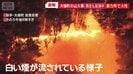 上空からの映像では、火の手はかなり広がっているのが分かります。そばには消火活動にあたる消防隊の姿もあります。