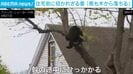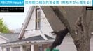 住宅街に集まった多くの人の視線の先にいるのは「クマ」である。映像には、住宅街の木に登ったクマが慌てる様子もなく、のんびりとくつろぐ様子が映っている。