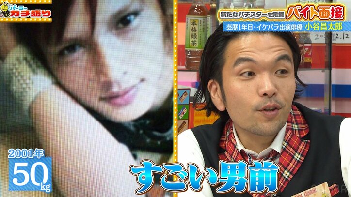 見取り図・盛山「すごい男前やん!」39歳の新人芸人が“イケメン俳優”だった頃 体重は現在より55キロ減 パーラーカチ盛り ABEMA店 2026/04/26 14:00 拡大する 4月24日放送の「パーラーカチ盛りABEMA店」で行われた新バイト面接に、吉本興業1年目のチャーリーボブ・小谷昌太郎が登場。かつて人気ドラマ『花ざかりの君たちへ〜イケメン♂パラダイス〜』に出演していた俳優時代の面影を完全に失った、驚きの激変ぶりが明らかとなった。 小谷がスタジオで披露した高校1年生当時の写真は体重が50キロで、俳優として活動していた2015年当時は55キロと、まさに「イケパラ」の名にふさわしい端正なルックスを誇っていた。このビジュアルには、見取り図・盛山晋太郎も「すごい男前やん!」と思わず声を上げ 、さらば青春の光・森田哲矢も「男前やな」と絶賛。当時の輝きを称える声が次々と上がった。 続きを読む