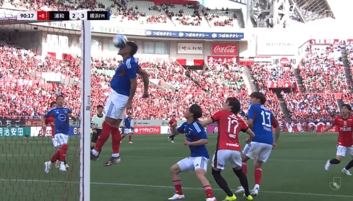 「何してんの…」Jリーグの衝撃“顔面オウンゴール”にSNS騒然!「どうしてそっちにクリアしたの」横浜FMキニョーネスが唖然 Jリーグ横浜F・マリノス,浦和レッズ 2026/04/25 22:32 拡大する 【明治安田J1百年構想リーグ】浦和レッズ 2-3 横浜F・マリノス(4月25日/埼玉スタジアム2002) 横浜F・マリノスのDFジェイソン・キニョーネスが、まさかの“顔面直撃”オウンゴール。SNS上が騒然となった。 横浜FMは4月25日、明治安田J1百年構想リーグ第12節で浦和レッズと敵地で対戦。3-1とリードして迎えた90分、予想だにしない形で失点を喫してしまった。 左サイドのポケットを浦和のMF松尾佑介に深くえぐられ、ゴール前へ高く浮き上がるクロスを許す。このボールの落下地点にいち早く入ったキニョーネスが、フリーの状態でジャンプ。おそらくバックヘッドでのクリアを狙ったはずだが、ジャンプのタイミングを誤ったのか、ボールは無情にも顔面を直撃。ボールはそのまま自陣のゴールネットに吸い込まれてしまった。 続きを読む