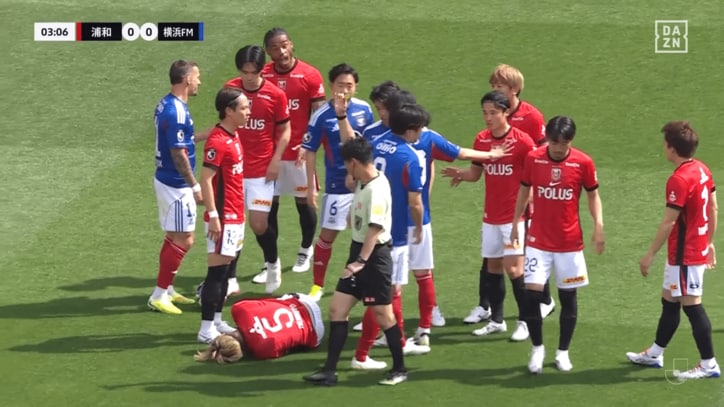 「VARあるのにイエロー?」浦和FW、異例のジャッジ問題視…マリノスFWの肘が首に直撃で物議「しっかり仕事してほしい」 Jリーグ横浜F・マリノス,浦和レッズ 2026/04/26 12:18 拡大する 【明治安田J1百年構想リーグ】浦和レッズ 2-3 横浜F・マリノス(4月25日/埼玉スタジアム2002) 試合開始早々の危険なプレーが物議を醸している。 4月25日の明治安田J1百年構想リーグ第12節で、浦和レッズと横浜F・マリノスが激突。激しい乱打戦となった試合は最終的には3点を奪ったアウェーの横浜FMが競り勝ち、4試合ぶりに勝点3を獲得した。 そんな試合で目を背けたくなる危険なプレーが発生したのが、キックオフ直後の3分だった。 続きを読む