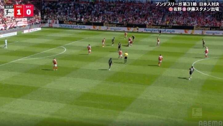 天才かよ!佐野海舟が「エグすぎる」 王者バイエルン相手に”衝撃プレー”…相手が前を向いた瞬間に”ボール奪取”「もうビッグクラブ行け!」 ブンデスリーガ 2026/04/27 08:00 拡大する 【ブンデスリーガ】マインツ 3-4 バイエルン(日本時間4月25日/メーヴァ・アレーナ)マインツの日本代表MF佐野海舟が、狙い澄ましたボール奪取でカウンターの起点となった。マインツは日本時間4月25日、ブンデスリーガ第31節でバイエルンと対戦。佐野はアンカーのポジションで31試合連続スタメン出場となった。15分に先制点をアシストした佐野は、19分にも球際の強さからチャンスを作り出した。MFバラ・サポコ・エンディアイエへパスが通ったタイミングで素早く寄せた佐野は、相手が前を向いたところでボールを絡め取る。 続きを読む