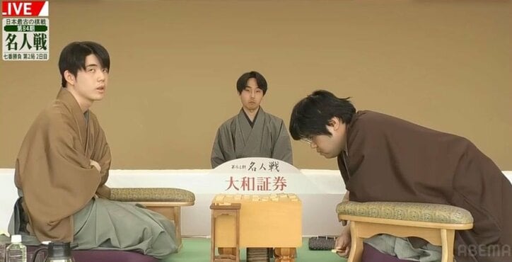 「これは何の音?」「情緒ありますね」対局室に届いた“重低音”に藤井聡太名人&糸谷哲郎九段がキョロキョロ ABEMA地域トーナメント藤井聡太,糸谷哲郎 2026/04/27 07:30 拡大する 将棋の第84期名人戦七番勝負第2局が4月25・26日の両日、青森県青森市の「ホテル青森」で行われ、藤井聡太名人(竜王、王位、棋王、王将、棋聖、23)が挑戦者の糸谷哲郎九段(37)に勝利した。シリーズ成績を2勝0敗とし、防衛・4連覇に向けて大きな一歩を記した本局だが、白熱の終盤戦において、対局室に届いた“ある音”が対局者とファンの心を動かす一幕があった。 舞台となった「ホテル青森」は、海に面した青森港からほど近い場所に位置している。極限の集中力がぶつかり合う2日目の午後、静寂に包まれた対局室に突如として「ボーー」という深く響く重低音が届いた。 続きを読む