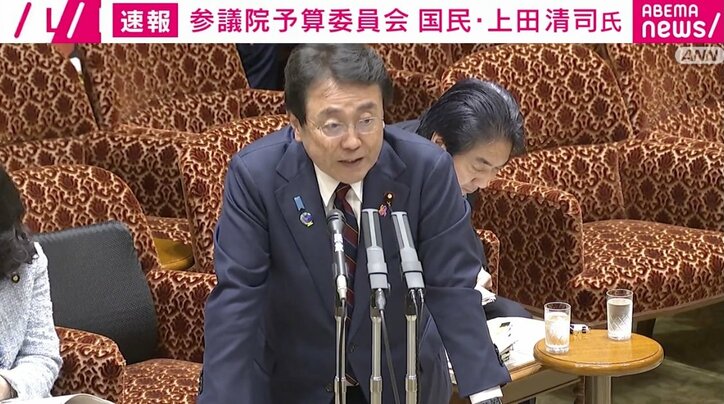 「赤沢大臣が、あれ?トイレ? まずいな」赤沢大臣が「トイレカムバック答弁」…再生可能エネルギー賦課金が“しれっと”年1056円→1万9000円になっている? 速報,会見 2026/04/27 15:52 拡大する 27日、参議院予算委員会において、赤沢亮正大臣がトイレで不在となり、議場内がざわついた。 国民民主党の上田清司議員は「税収の上振れ」について高市早苗総理に質問。その後、赤沢大臣に質問をしようとしたところ不在であったため、「赤沢大臣が、あれ?トイレ?まずいな」と当惑。議場内もざわついた。 上田議員は「ちょっとまずいな」とこぼし、「最後に再生可能エネルギー賦課金を題材にしております。これみんなですね…」と話したところで赤沢大臣が戻ってきた。 続きを読む