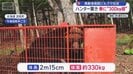 箱わなにかかった巨大なヒグマ。27日午前8時半ごろの映像です。