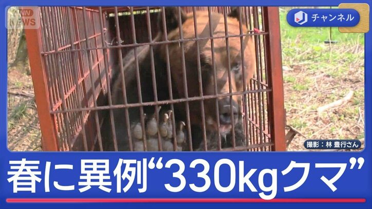 春としては異例の体重330キロ。27日に撮影された巨大ヒグマの映像です。緊迫の一部始終です。
