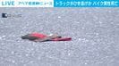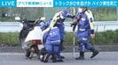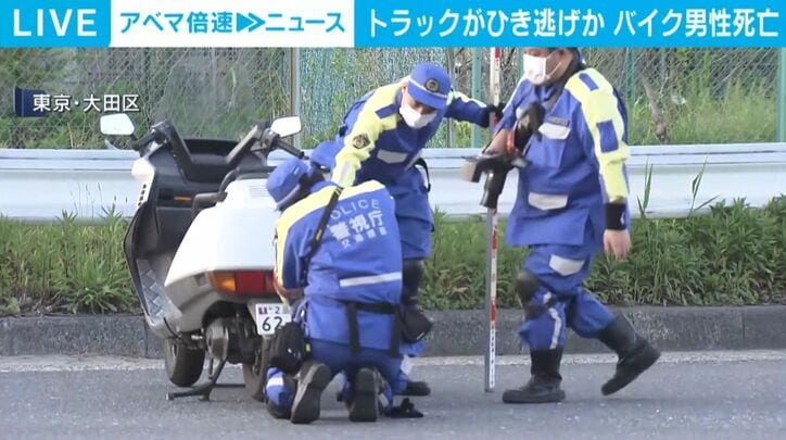 トラックひき逃げか バイク男性死亡 速報 2026/04/28 20:57 【映像】事故現場付近の様子 この記事の写真をみる(2枚) バイクに乗った男性が大型トラックにひき逃げされ死亡しました。【映像】事故現場付近の様子 捜査関係者などによりますと、午後4時すぎ、東京・大田区城南島でバイクに乗った男性が大型トラックにひかれました。 男性はその場で死亡が確認されました。 警視庁はその場から走り去った大型トラックの行方を追っていましたが、運転手の身柄を品川区内で確保しました。 運転手は「事故の認識はなかった」と話しています。 警視庁は過失運転致死などの疑いで調べています。(ANNニュース) この記事の画像一覧 【映像】万博EVバスがハンドル操作不能→激突の瞬間 【画像】16歳だった元舞妓が飲酒させられている様子(複数カット) タイガー・ウッズ選手 事故直後の姿が公開 アメリカ この記事の写真をみる(2枚) Twitter