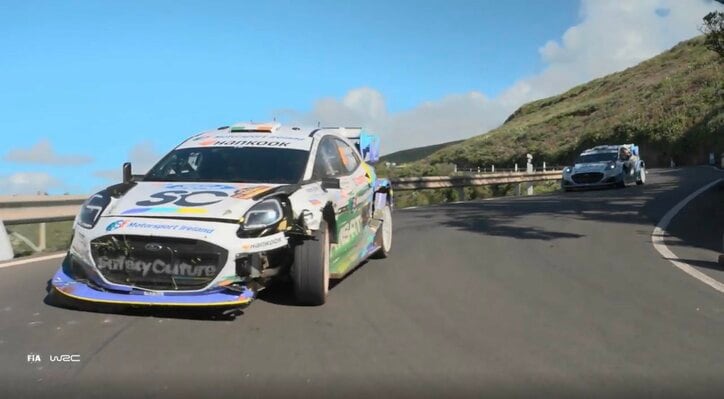「なんというセーブだ!」世界最速ラリー車、“茂みに突っ込む”も驚異の復活劇 「よくこんなところ攻めれるな」信じ難い光景にネット脱帽 WRC 2026/04/29 11:30 拡大する 【WRC 世界ラリー選手権】第5戦 ラリー・イスラス・カナリアス(4月23日―26日) WRC(世界ラリー選手権)第5戦のデイ3で、コース脇の深い茂みへ突っ込んだフォードのマシンが、観客の手を借りて奇跡的にコース復帰を果たす珍しいシーンが見られた。 競技3日目デイ3、フォードのジョン・アームストロングは、この日の最終ステージとなるSS14で、前日までの総合10位からひとつでも順位を上げようと攻めの走りをしていた。しかし、アームストロングが操るフォード・プーマ・ラリー1は、コーナーを抜けた先でわずかに膨らんだ瞬間、そのままアウト側のガードレールの間をすり抜けてコース脇へ落ちてしまった。 続きを読む