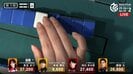 そして11巡目、内川が4枚目の發を引き寄せ加カン。この時、カンドラ表示牌をめくる役目を担ったのが高宮だった。しかし、あまりの重圧からか牌が指先でうまく回転せず、牌山の上で立ってしまう珍事が発生。さらに、一度山からこぼれた表示牌を元の位置に戻そうとする際、高宮の手元がぷるぷると小さく震える様子がカメラに映し出された。