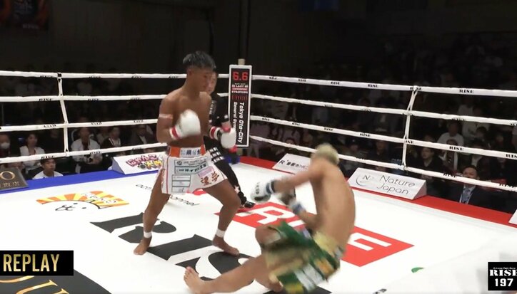 「はやっ」グラドルも驚愕の秒殺KO 「ちょっとこれはスゴイ」実況も苦笑い RISE 2026/04/29 08:49 拡大する 拮抗する展開が予想されたカードは、蓋を開けたら衝撃の秒殺KO決着。試合を見守っていたグラビアアイドルも思わず「はやっ」。素で驚くほど電光石火の劇的決着だった。 4月26日、後楽園ホールで開催された「RISE197」。塚本望夢(team Bonds)と伊藤琉之助(EX ARES)の対戦は、1ラウンド開始わずか65秒で決着。フライ級連敗から階級を上げて挑んだスーパーフライ級戦で、塚本が進化を発揮した。 続きを読む