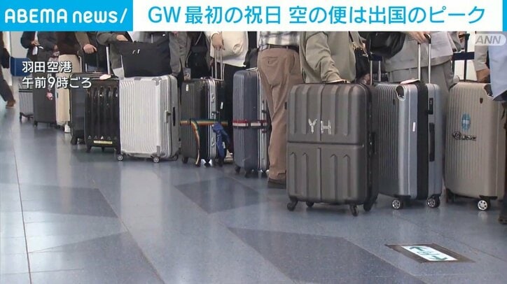 GW最初の祝日 空の便は出国のピーク 速報 2026/04/29 13:55 拡大する 最大で12連休となるゴールデンウィークの初めての祝日となったきょう、空の便は出国がピークです。羽田から出国する人ら「シンガポールです。(Q.何するの?)遊ぶ」「台湾に(旅行)。グルメを楽しみたい。欧米は物価が高いからちょっとでも節約」 全日空と日本航空によりますと、ゴールデンウィーク期間中に国際線の予約をしたのはおよそ38万人で、きょうが出国のピークです。羽田空港と成田空港からは、あわせておよそ8万7000人が出国します。 続きを読む