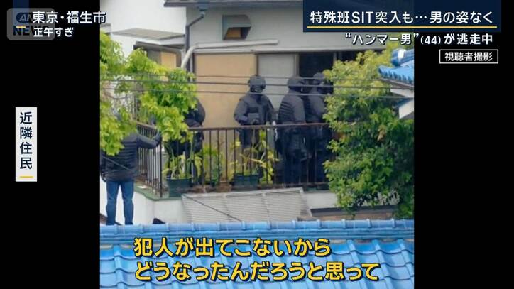 警視庁は、男が立てこもっているとみて警戒します。特殊部隊・SITが男の母親を救出するのを住人が目撃していました。