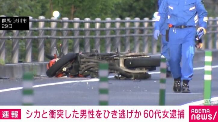 シカと衝突した男性をひき逃げか 60代女逮捕 速報 2026/04/30 08:40 拡大する 群馬県渋川市でシカと衝突して転倒した男性がひき逃げされて死亡した事件で、警察はひき逃げの疑いなどで60代の女を逮捕しました。 笹川ルリ子容疑者(61)は29日、渋川市で軽自動車を運転していた際、野口正己さん(61)をひいてけがをさせたにも関わらず、そのまま逃走した疑いがもたれています。野口さんはその後、死亡しました。 警察によりますと、野口さんはバイクに乗っていて、現場でシカと衝突し転倒した後に、笹川容疑者の車を含む2台の車にひかれました。 続きを読む