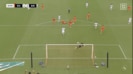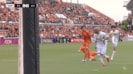 DFエドゥアルドが中盤でボールを奪うと、すぐさま斜め右前へ展開。スピードのある浮き球で処理が難しいパスだったが、長谷川はこれを巧みにコントロール。ワンバウンドしたボールがやや浮き上がったところを、間髪入れずに落ち際を見極めて右足を振り抜いた。