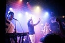 Every Little Thingの「Dear My Friend」のSEに合わせてノリノリでステージに現れたフレンズのメンバー。自由にステージを舞うおかもとえみ(Vo)と、拳を突き上げ熱唱するひろせひろせ(Key)はオーディエンスの士気を上げ、会場をほどよく温めてくれた。一曲目に披露したのは「夜にダンス」。イントロから重なり合うおかもと、ひろせ、三浦太郎(Gt)の歌声は、ミラーボールの光に乗ってフロアいっぱいに降り注いだ。二曲目の「DIVER」を終えると、三浦のフレンズであるampelの河原太朗が登場しサックスパートとして「喧騒」をコラボ演奏。フレンズのポップサウンドにムーディなサックスの音色が加わり、情緒溢れる空間がフロア一帯を包み込んでいた。