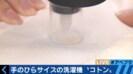 今回紹介されたのは手のひらサイズの洗濯機「COTON(コトン)」。ヘアスプレー缶のような形で、バックに入れることができるサイズなので、どこにでも持ち運べ、いつでも汚れを落とすことができるという優れものだ。