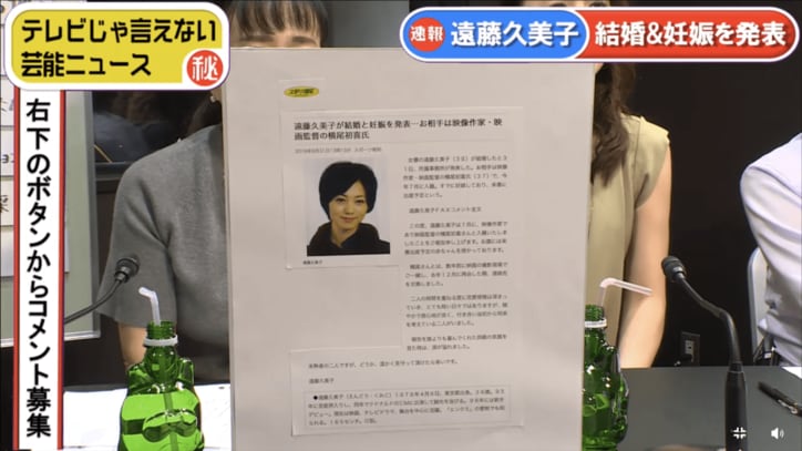 遠藤久美子が妊娠&結婚 相手は映画監督の横尾初喜 2019/10/24 17:57 拡大する 女優の遠藤久美子(38)が映像作家の横尾初喜さん(37)と結婚したと、31日、所属事務所を通じて発表した。遠藤は現在妊娠中で、来年春に出産予定。数年前に映画の撮影で出会った2人は、昨年12月に再会。連絡先を交換し交際に至ったという。 遠藤のコメントは以下の通り。このたび、遠藤久美子は7月に、映像作家であり、映画監督の横尾初喜さんと入籍致しましたことをご報告申し上げます。お腹には来年春に出産予定の赤ちゃんを授かっております。 横尾さんとは数年前に映画の撮影現場でご一緒し、去年12月に再会した際、連絡先を交換しました。2人の時間を重ねるたびに恋愛感情は深まっていき、とても短い日々ではありますが、穏やかで居心地が良く、付き合い当初から将来を考えている2人がいました。報告を誰よりも喜んでくれた両親の笑顔を見たときは涙があふれました。未熟者の2人ですが、どうか、温かく見守っていただけたら幸いです。 続きを読む