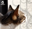 窓の外を覗く猫のミルキー。