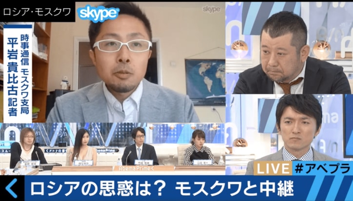 【北方領土問題】「プーチン大統領の決断で世論も変わる」 ロシア現地記者が語る 2016/09/07 11:00 拡大する 日本時間9月2日よりロシアのウラジオストクで行われた日露首脳会談。安倍総理大臣は経済協力をアピールすることで北方領土問題の解決に向け、ロシア側の譲歩を引き出す狙いがあったが、ロシア側より12月にプーチン大統領より訪日の発表があり、大きく前進したと見られている。この件を9月6日の『AbemaPrime』(AbemaTV)で取り上げ、ロシアに精通した新党大地の鈴木宗男代表とロシア国際政治に詳しい畔蒜(あびる)泰助氏を番組に迎えた。2人は今回の見通しや日露関係の発展について見解を述べ、さらに番組には、時事通信モスクワ支局の平岩貴比古記者が中継で登場し、ロシア国内の反応について伝えた。 続きを読む