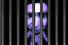 格子を握るたくましい手がこちらに伸びてきそう……まよさんも思わず半目で顔を背けています。
